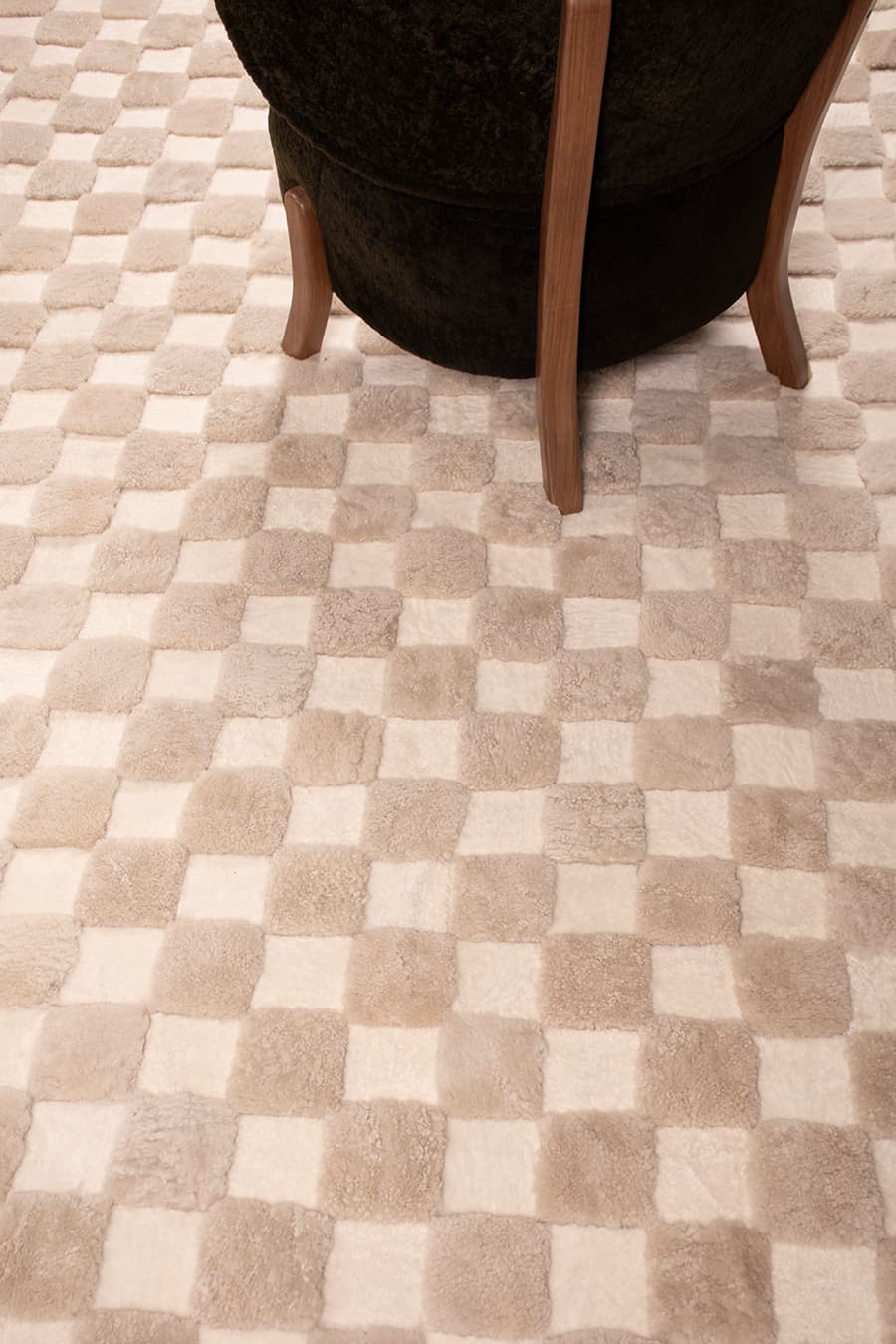 There’s something magnetic about symmetry. The CHECKERED Shearling Rug is our minimalist ode to balance and texture, featuring a meticulously hand-pieced checkerboard layout in alternating pile heights.